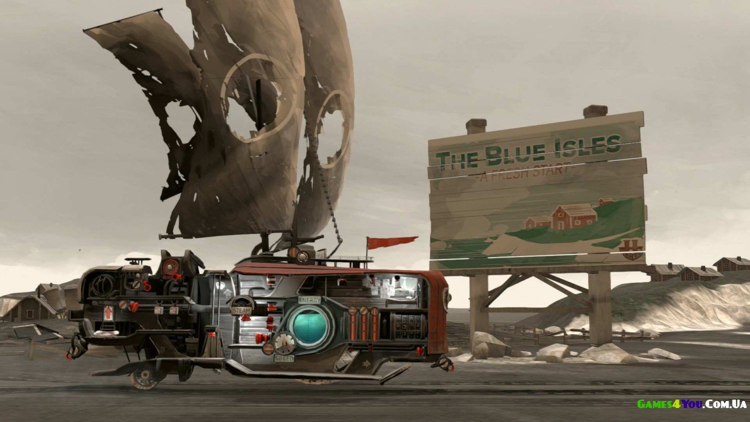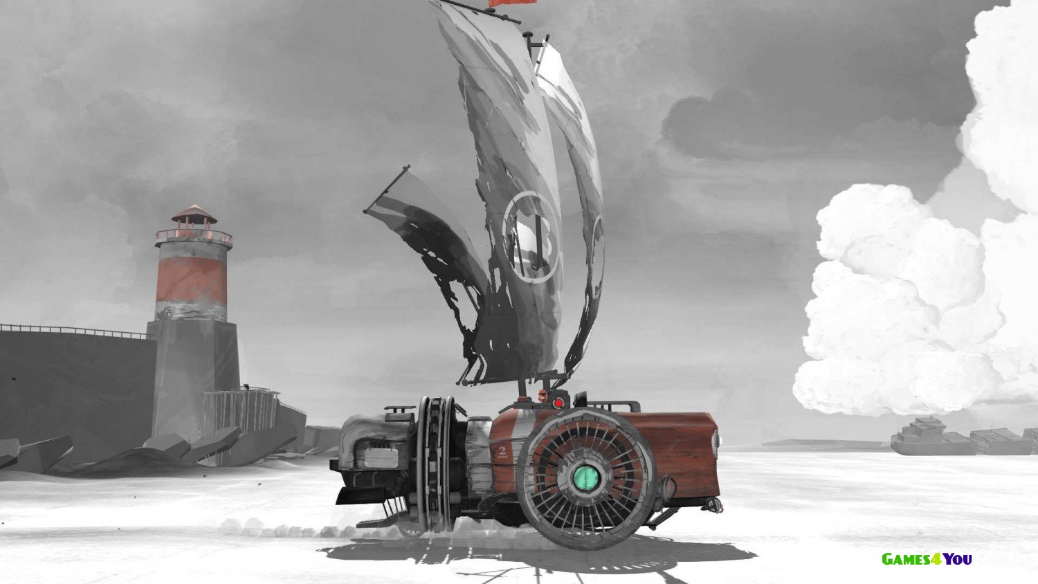 Far Lone Sails – це не просто гра, це ціла пригода по просторах постапокаліпстичного світу. Справа в тому, що в даному ігровому проекті вам доведеться сісти за штурвал величезної машини, яка повинна безтурботно рухатися за своїм напрямом і при цьому їй керуватиме лише один персонаж.