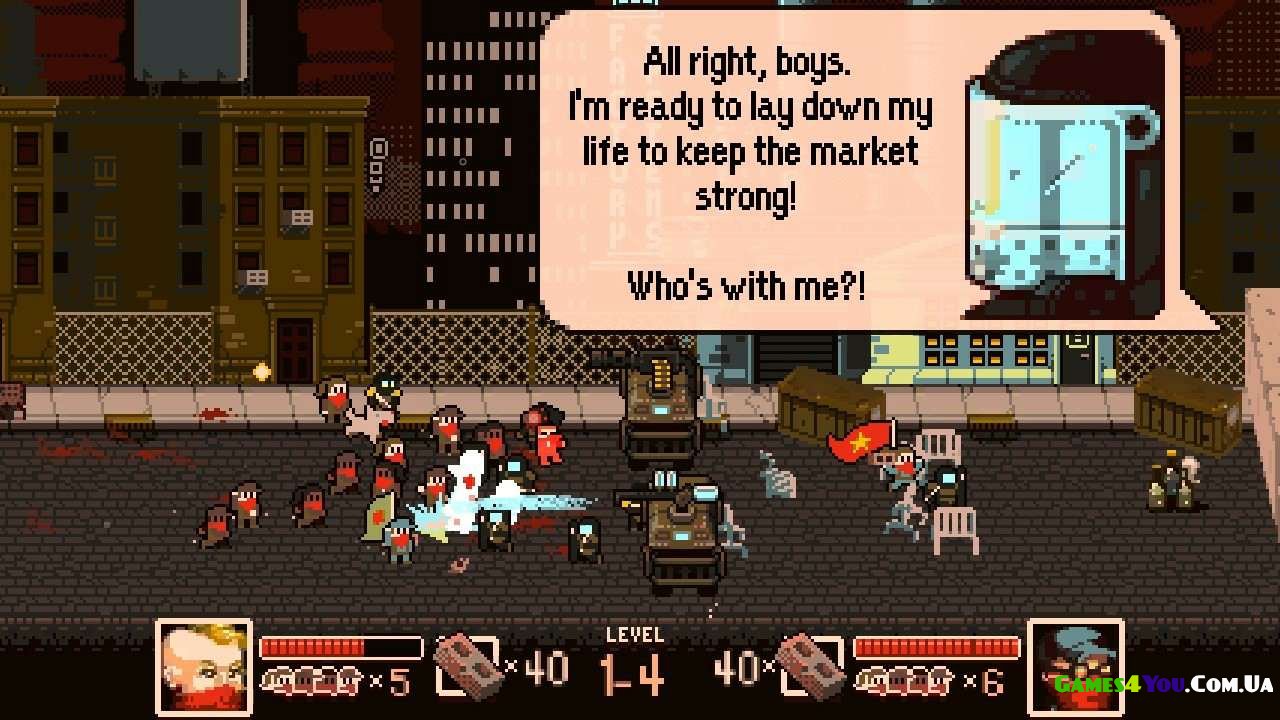 - Тут усі головні! Революцію можна влаштовувати як поодинці, так і в компанії з друзями в локальній кооперативній кампанії та в нескінченному аркадному режимі.
