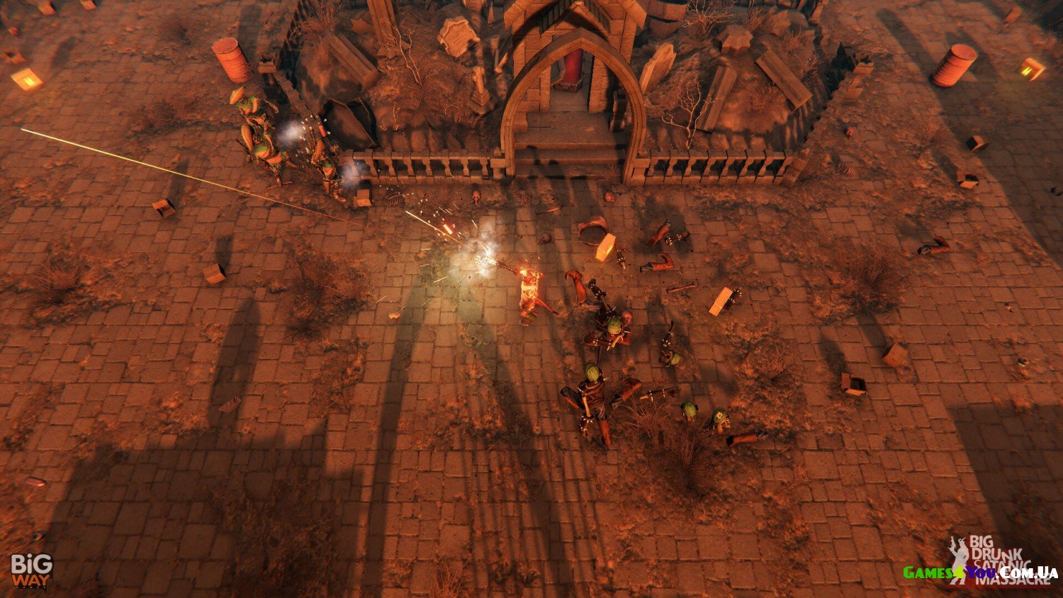 Той, хто хоче насолодитися BDSM, має просто завантажити торрент Big Drunk Satanic Massacre. Двоякий сенс виходить, та у цій грі взагалі все неоднозначно. Наприклад, виявляється, що не пекло псує людям життя, а люди можуть зіпсувати цей неповторний простір за допомогою своїх корпорації та інших справді жахливих винаходів. Незрозуміло, як ставиться до цього Сатана — гра про його сина, якого звати просто Лу. Він хоче очистити чистилище і весь прилеглий простір. Заодно Лі рухає бажання врятувати одну дияволу. Але до боса, який викрав її, треба ще дістатися, перемогти інших босів, з яких один одного кращий.