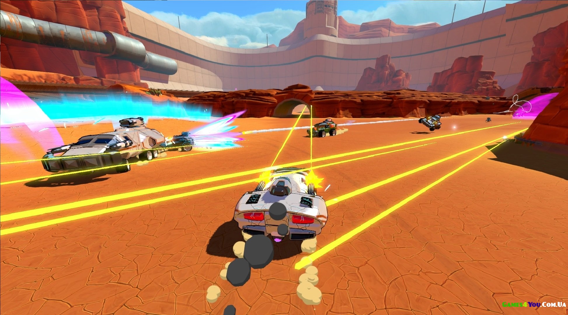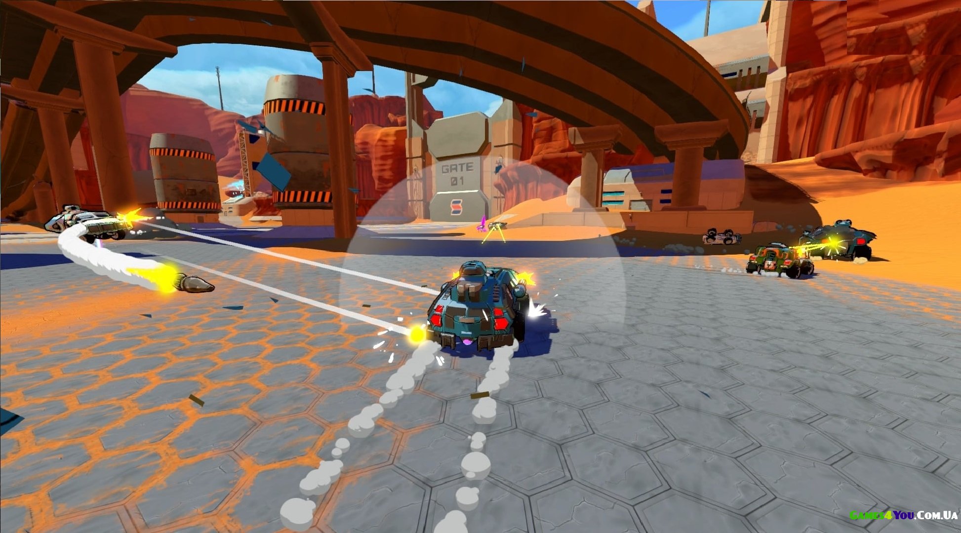 Якщо ви любите швидкість і веселощі, Auto Age: Standoff для вас! Тут доведеться швидко рухатися на озброєному автомобілі, щоб розправитися з ворогами. Графіка запозичена з мультфільмів 1980-х, а дія розгортається 2080 року. Про те, що сталося у світі і хто з ким бореться, допоможе дізнатися про одиночний режим. Також є кілька варіантів цікавого мультиплеєра, які реалізовані як на розділеному екрані, так і онлайн.