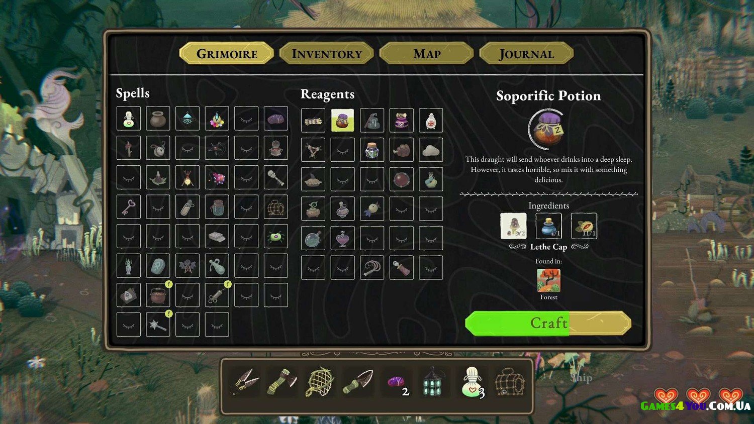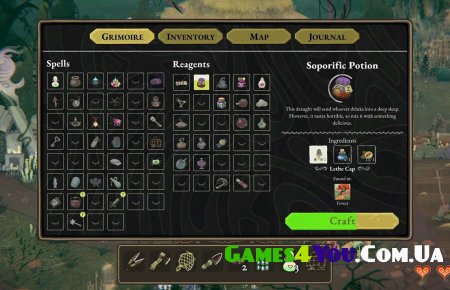 - Збирайте та створюйте неймовірні інгредієнти: токсичні поганки, очі тритонів, страх у пляшці та інше.