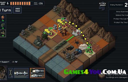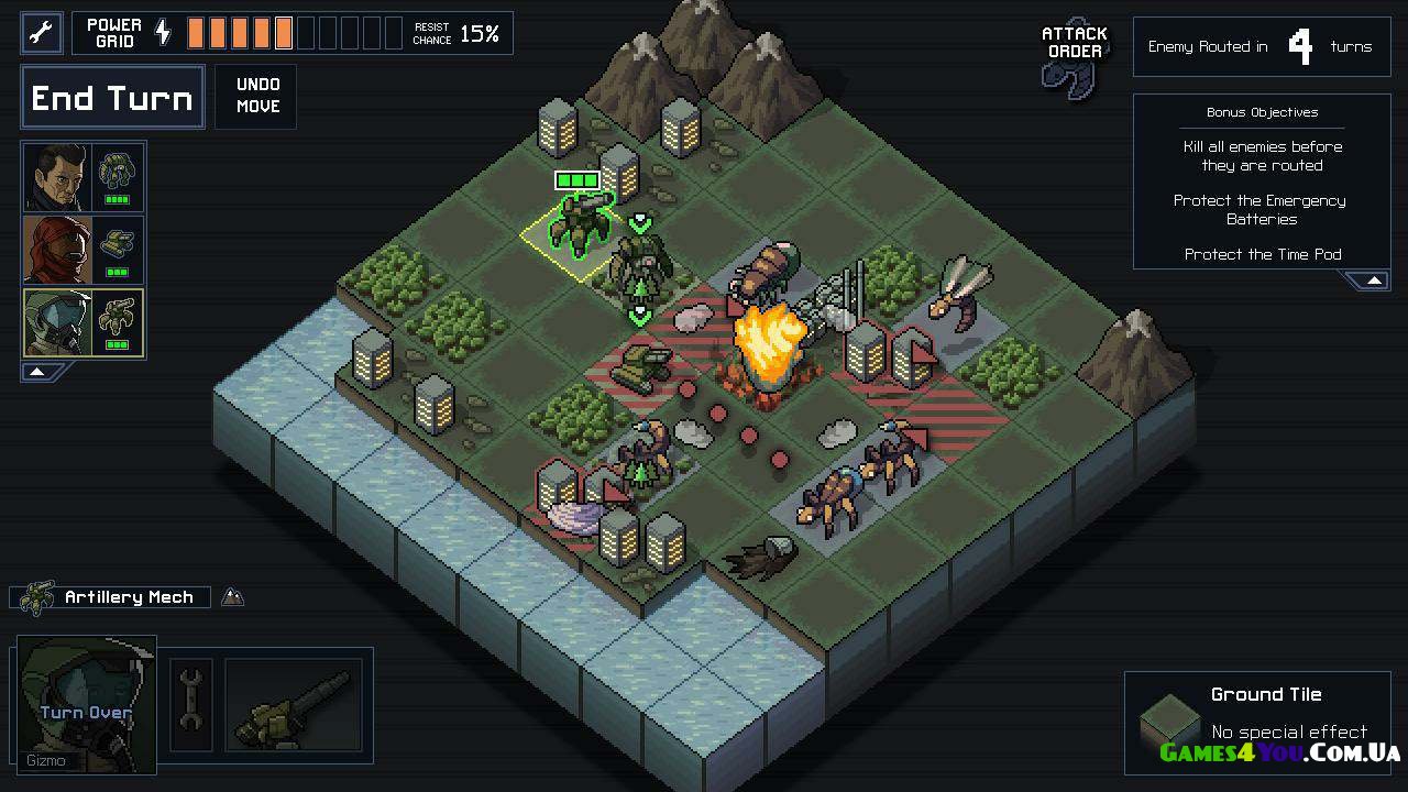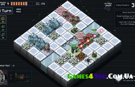 Into the Breach – стратегія з покроковими боями, детальним вивченням оточення та спробами відтворити ідеальний світ для любителів постійного протистояння. Вам потрібно чітко розподіляти ресурси, вивчати нові напрями доступних військ і поступово наближатися до перемоги. Але не варто поспішати, пам'ятайте, що тактика і планування в цій грі відіграють значно важливішу роль, ніж інші сегменти ігрового процесу. Будьте уважні та впевнено дійте!