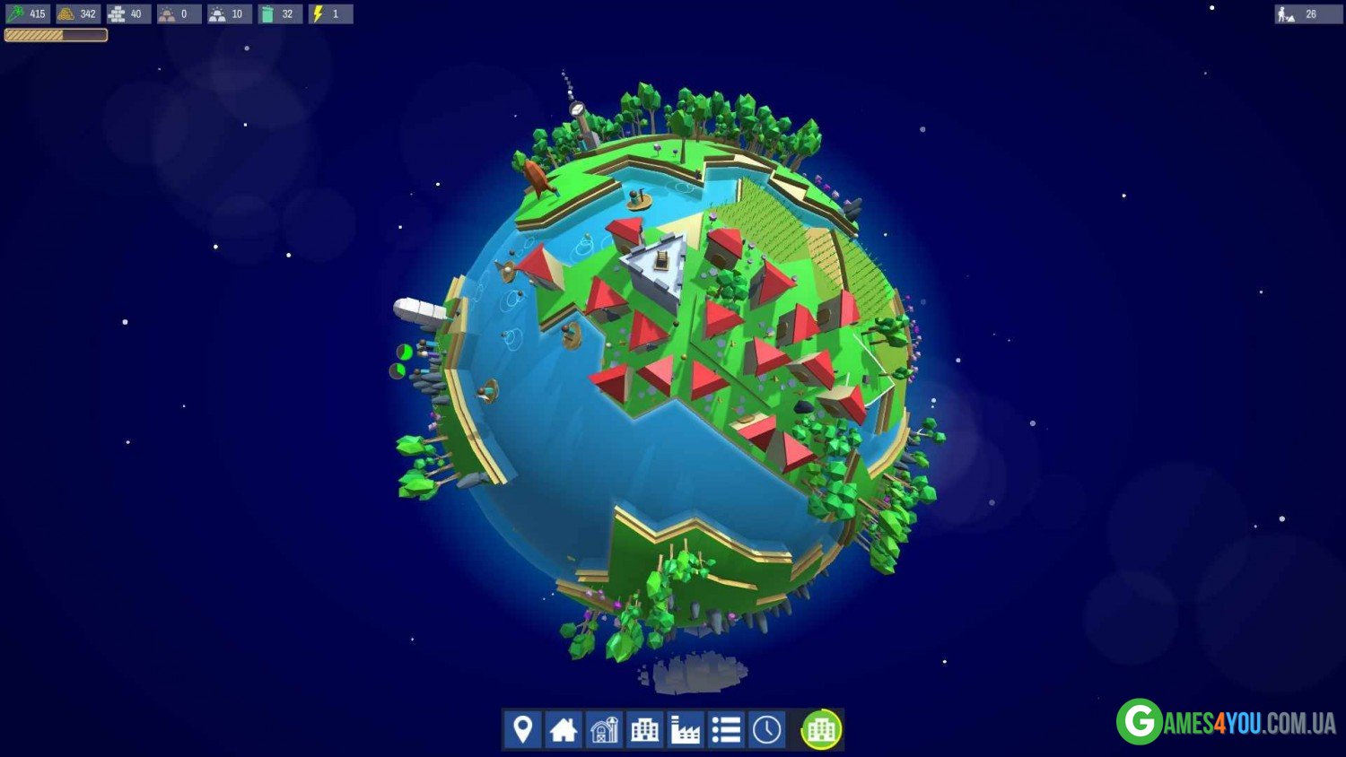 Численні світи у Poly Universe відрізняються досить скромними масштабами. Грамотно використовуйте доступну площу, щоб зводити міста. Слідкуйте за балансом промислових та житлових будівель, щоб ваші підопічні відчували себе комфортно. І не забувайте про захист, без якого безпека громадян наразиться на ризик! Адже незнайомі планети, що знаходяться на краю всесвіту, таїть чимало загроз, які можуть призвести до смерті всіх жителів.