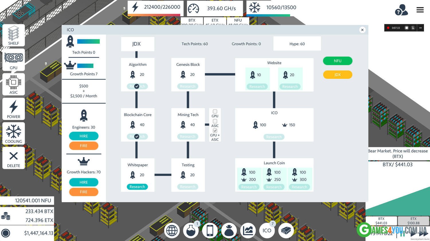 Якщо вам цікаво те, чим саме вам належить займатися, приміром, потрібно буде закуповуватись абсолютно новим обладнанням і намагатися стежити за тенденцією технологій. Не варто сподіватися на казуальність, тому що симулятор намагатиметься надати максимум функцій, які дозволять вам досягти сприятливого результату. Поступово ферма зростатиме і принесе вам максимум задоволення та гарного настрою. Головне завантажити Blockchain Tycoon через торрент безкоштовно російською мовою, уважно вивчити всі доступні напрямки та почати активно досягати сприятливого результату. Поступово ви почнете розуміти всю сутність нової пригоди та зрозумієте всі нюанси майнінг-ферми. Приємної гри!