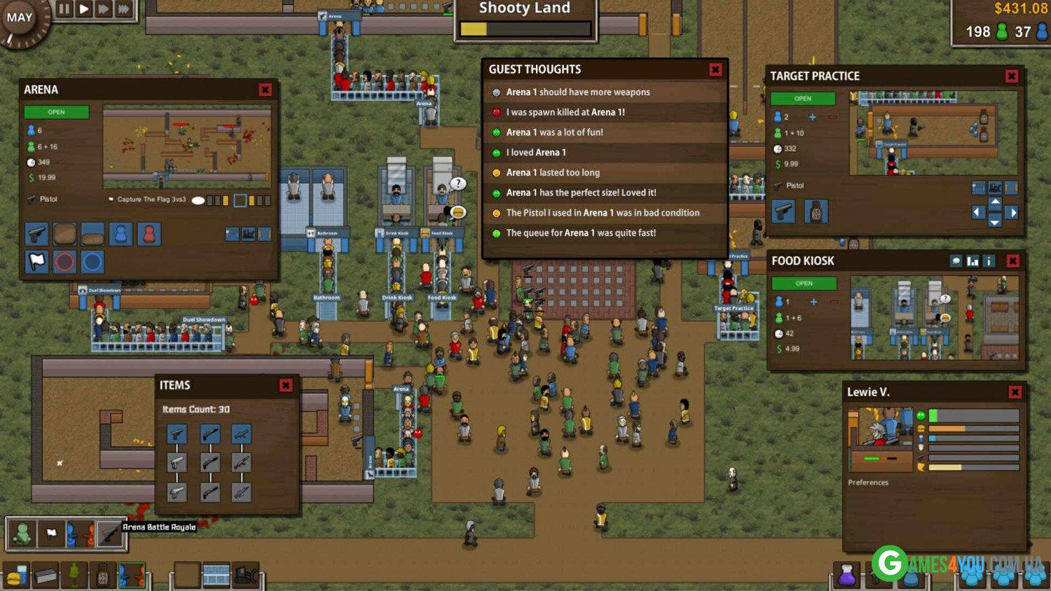 Тепер залишилося лише завантажити Battle Royale Tycoon через торрент російською мовою та можна починати діяти. Графіка тут, звичайно, не така сучасна, але її цілком достатньо, щоб реалізувати свої найсміливіші ідеї. Детальність, численні функції та маса різних можливостей, все це дозволить вам без проблем досягти чудового результату. Люди будуть раді відвідати ваш новий парк з аренами, який додасть не тільки адреналіну в їхнє життя, а й дозволить реалізувати себе як успішного стрільця. Головне діяти обачно і продумувати всі свої кроки, тільки так ви досягнете успіху і будете успішним бізнесменом. Пропонуємо вам не гаяти часу і просто починати реалізовувати бізнес-план. Бажаємо вам процвітання та великих успіхів!