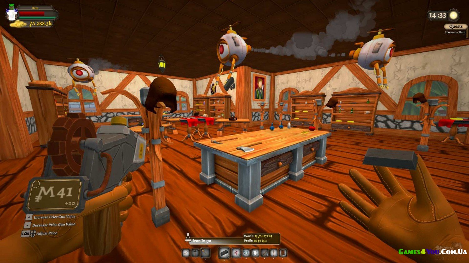 У вашому магазині завжди будуть зберігатися сотні товарів з різними характеристиками шкоди та захисту, і ви у будь-який момент зможете екіпірувати свого персонажа будь-яким із них. До ваших послуг різноманітні мечі, луки, булави та магічні палиці, а також безліч видів броні.